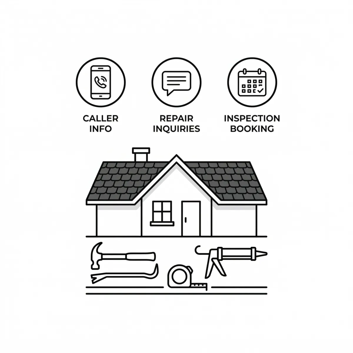 Our Voice AI Roofing Agent qualifies callers, answers questions about repairs and replacements, and books inspections—day or night.