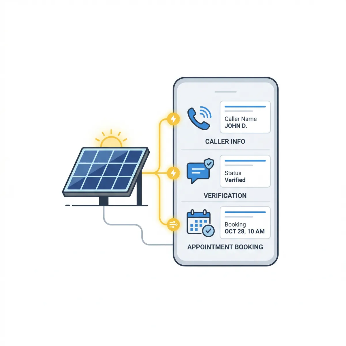 Our Voice AI Solar Agent greets returning callers by name, verifies contact details, and books free energy assessments—around the clock.